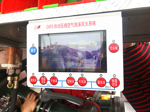 一般大流量壓縮空氣泡沫消防車,專配世界最先進的CAFS滅火系統---德國邁凱壓縮空氣泡沫系統,單臺車相當于7臺普通泡沫水罐車的功效,大大提高滅火效果的同時具有高效,節能,環保,提高作業人員安全系數等特點,是復雜危險大流量火災滅救的有利武器。