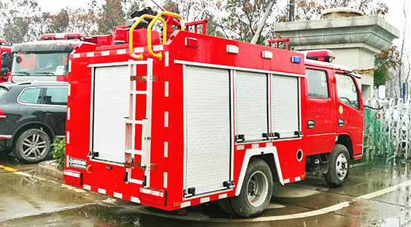 這款東風小型藍牌消防車,采用的是東風2600mm軸距單排駕駛室,因為鄉鎮和社區及微型消防站,乘坐3人已經可以滿足正常出勤的需要。