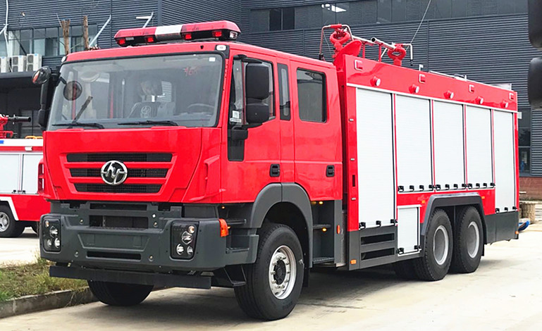 1.底盤:其實從外觀上來看,該車還是和之前產(chǎn)品一樣采用了依維柯斯特拉利斯的駕駛室。前臉進氣格柵采用金色裝飾橫條以及金色Logo,其余部分則沒有太大的變化。國六就更顯霸氣的氣質(zhì)了!后視鏡造型看上去與之前車型基本相同,但是在后視鏡旋轉(zhuǎn)機構(gòu)的下面安裝了兩個攝像頭,一個面對前下方一個面對側(cè)下方。都知道盲區(qū)多半位于駕駛室前部和左右兩側(cè),安裝這兩個攝像頭檢測盲區(qū)還是非常有必要的。這樣一來對于消防工作的完成顯得更加的便捷了!